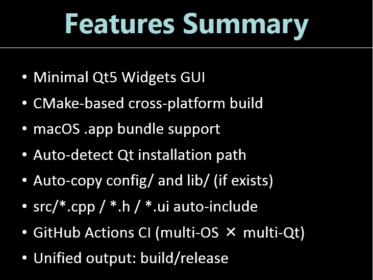 - Qt path auto‑detection (Linux / Windows / macOS)